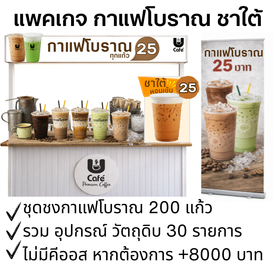 แพคเกจกาแฟโบราณ 13,900 บาท ชงง่าย ขายง่าย เมนูยอดนิยม ถูกใจทุกวัย ขายราคาเดียว 25 บาท